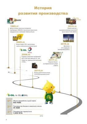 S-Oil Corporation — вторая по величине нефтяная компания Южной Кореи. S-Oil занимается переработкой нефти, производством нефтехимической продукции (бензин, дизельное топливо, смазочные материалы, пропилен, ароматические соединения) и поликристаллического кремния. Компания нацелена на внешние рынки и экспортирует более 60 % своей продукции. Крупнейшим акционером S-Oil является саудовская нефтяная компания Saudi Aramco. Подробнее тут...