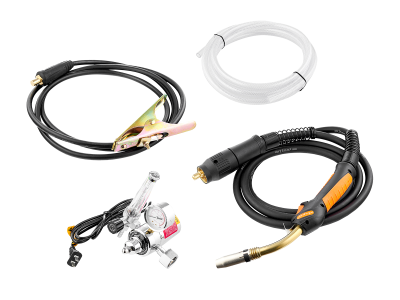 Горелка в сборе TECH MS 24, 3 м – 1 шт, Клемма заземления в сборе 300 А, 3 м – 1 шт, Комплект ЗИП – 1 шт, Паспорт и Руководство по эксплуатации – 1 шт., Ролик подающий V 0.8/1.0 мм (установлен на аппарате) – 1шт, Ролик подающий – 1 шт
