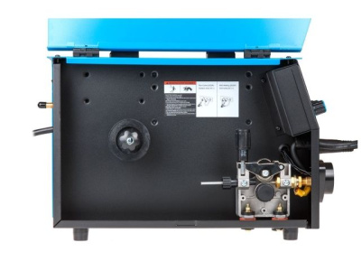 ВНИМАНИЕ! Часть аксессуаров (горелка, клемма заземления) находится внутри отсека подачи проволоки.